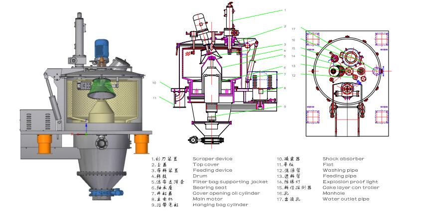 4、濾布(bu)袋在轉鼓内可以(yi)上下運動,産生振(zhèn)蕩效果,可以徹❤️底(di)清除殘餘濾餅。